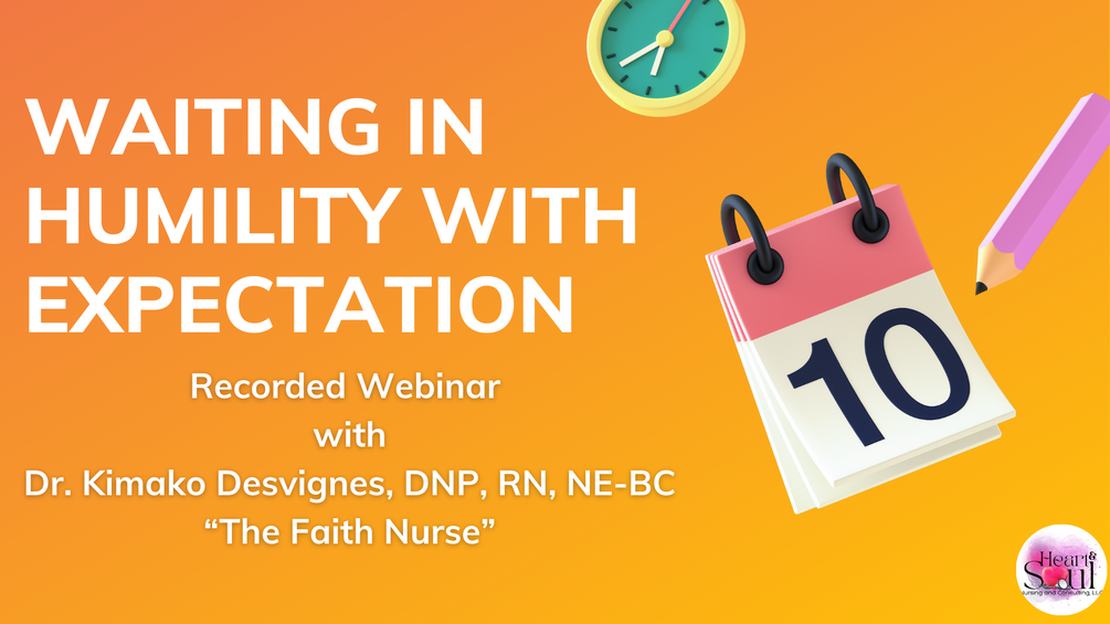 🎥 On-Demand Masterclass — 2+ hours of teaching, scripture, and biblical stories where Dr. Kimako Desvignes, DNP, RN, NE-BC, The Faith Nurse, equips you to wait with humility, expectation, belief, and trust.